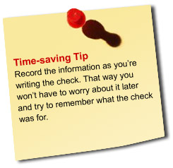 You’re not finished yet! You should always keep track of how much money you have in your account by using your check register. A check register is a booklet that is used to keep a record of all your checking related transactions, including checks written and deposits. A checkbook register is used to perform reconciliation. So, after you write a check, record the following information in your check register: